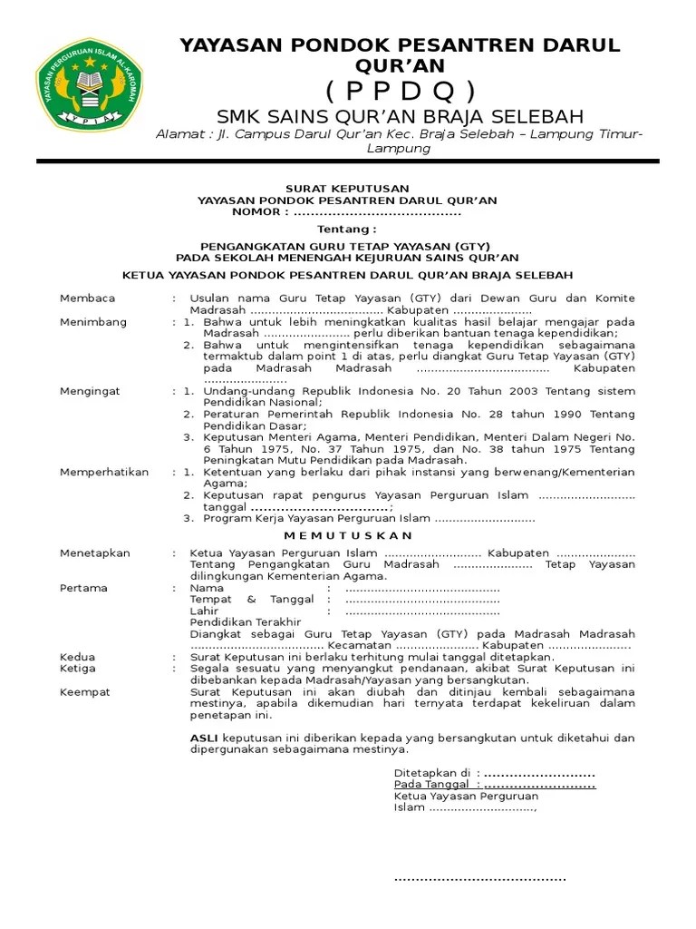 Contoh Sk Pengurus Yayasan Pondok Pesantren / Contoh Sk Yayasan Pondok Pesantren Masnurul - Berikut adalah contoh surat keputusan sk ketua yayasan pondok pesantren atau lembaga islam lainnya.